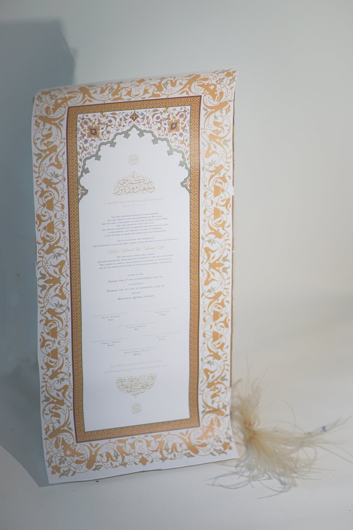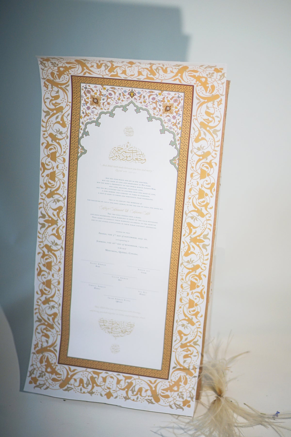 At the time of ordering, you must fill out your preferred language, your nikah details (names, dates, location), as well as your signature line preferences.