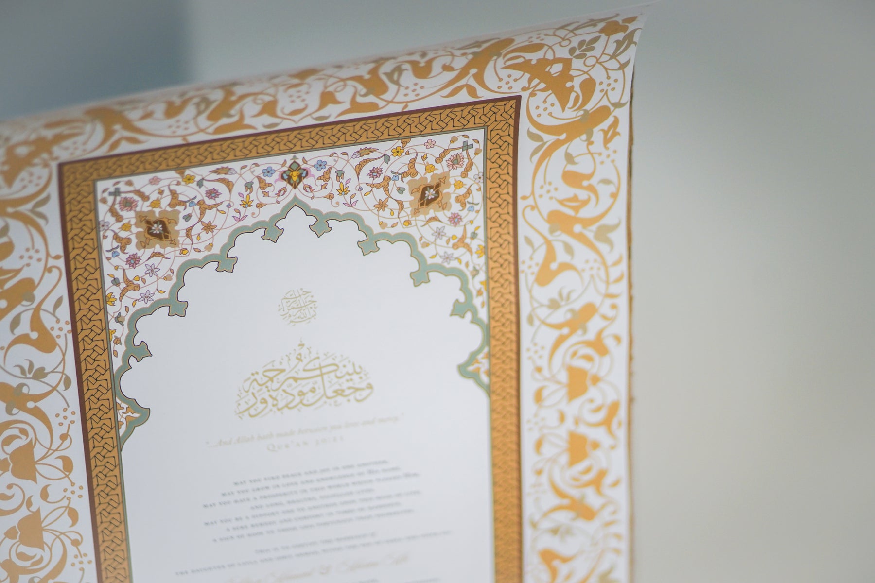 Now that your nikahnama is here, you’re not going to want to keep it in a mailing tube forever! Here are some tips for caring for your nikahnama on your wedding date, and beyond.